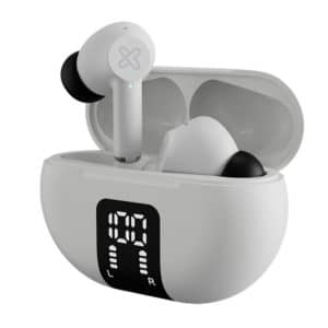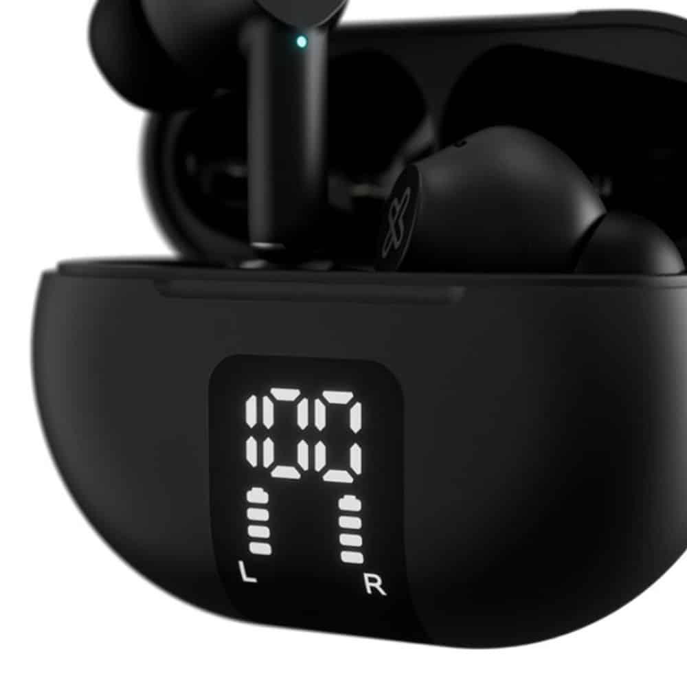 - Características y funciones especiales: Cancelación activa de ruido (ANC) y modo Transparencia | Micrófono integrado con tecnología de cancelación de ruido ambiental (ENC) | Botón multifunción Smart Touch | Compatible con Siri y Google assistant | Estuche de carga con pantalla LED que indica el nivel de batería | Indicadores LED de estado en cada audífono | Clasificación de resistencia al agua IPX4